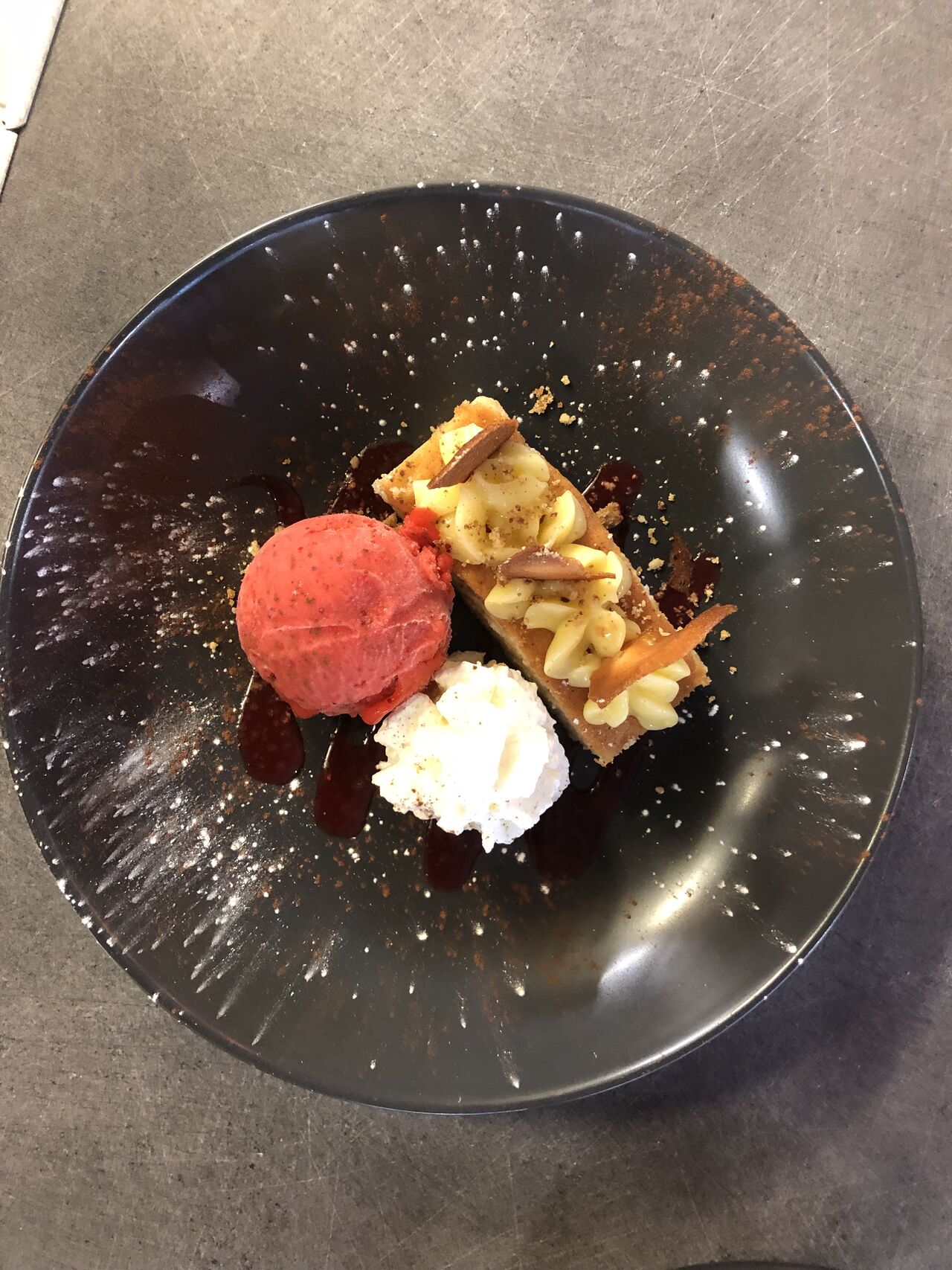 Choisissez parmi les nombreux plats français et faits maison et laissez-vous conquérir. Nous sommes réputés pour nos excellents plats du terroir et pour nos plats régionaux variés. Nos fromages exquis ou notre poisson sont incontournables. N’hésitez pas à essayer nos bières rafraîchissantes, nos boissons alcoolisées, nos boissons fraîches, nos bons vins, nos cafés , nos thés chauds et nos cocktails fruités si vous venez nous voir. Nos desserts divins et nos fruits vous rassasieront pendant la pause ou au dessert. Que diriez-vous d’un déjeuner délicieux ou d’un dîner chez nous ?